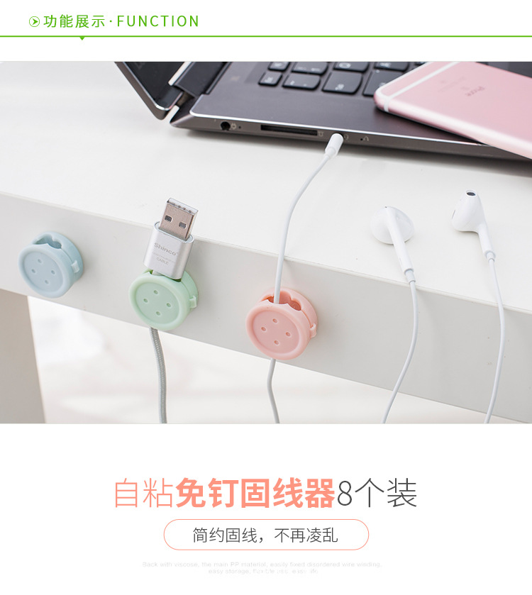 商品名称:免打孔桌面电线收纳 高品质固线器8枚装 创意随手礼