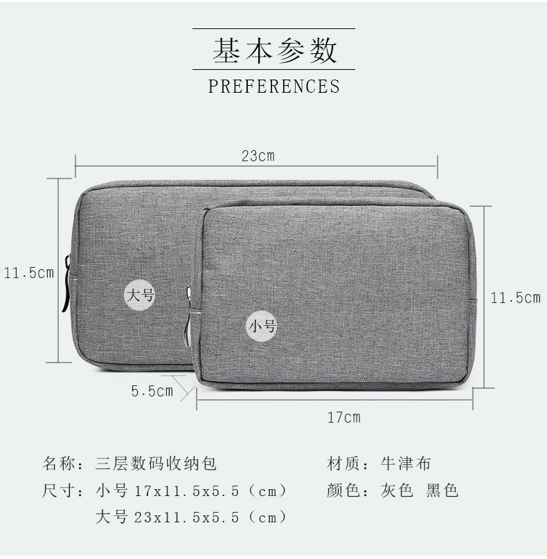 商品名称:牛津布三层空间数码配件收纳包 可定制的礼品