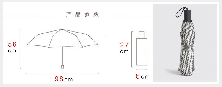 商品名称:时尚细条纹黑胶折叠伞 创意三折晴雨伞 广告礼品伞