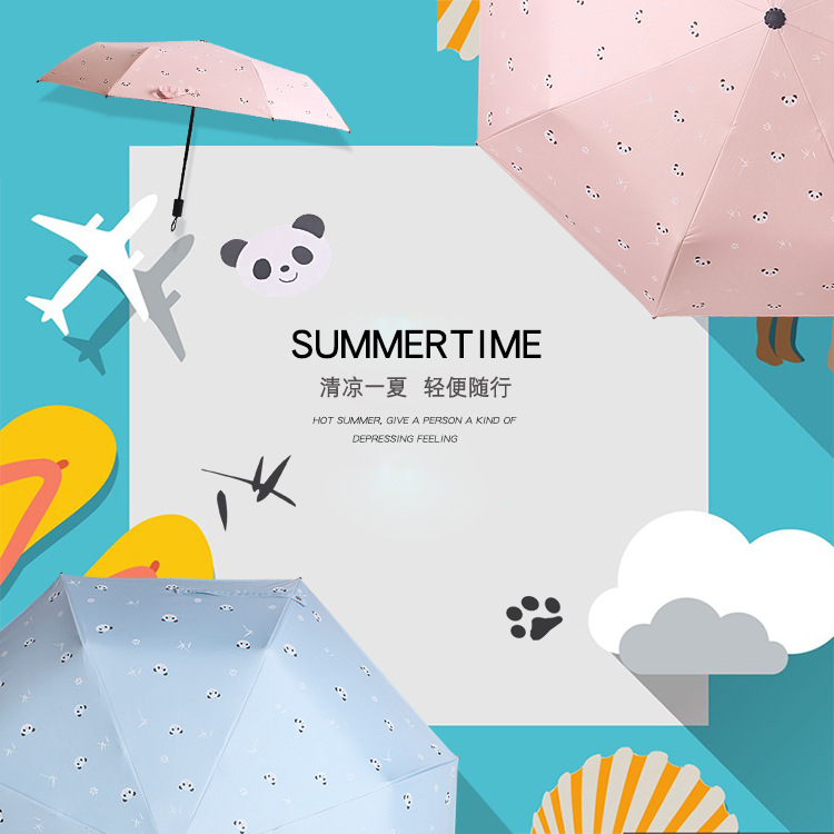 熊猫伞三折晴雨两用伞防紫外线 学生礼品定制