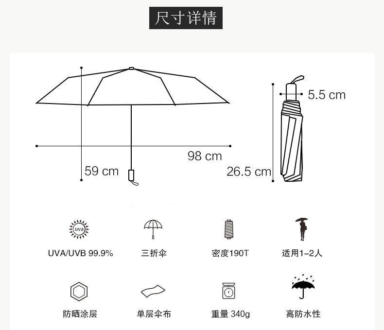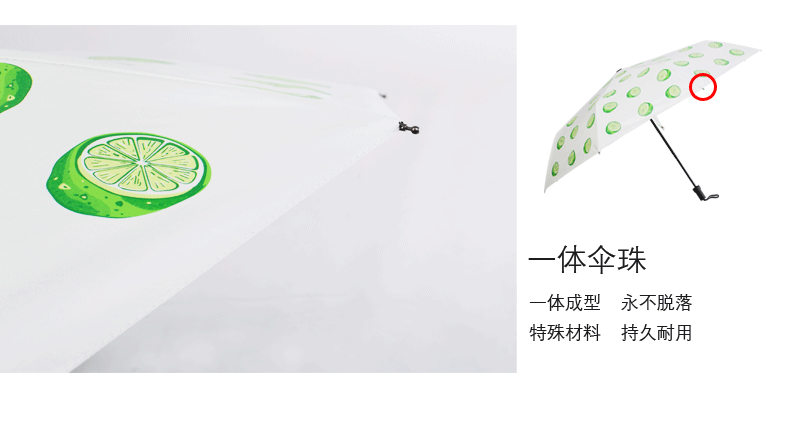 商品名称:三折太阳伞小清新柠檬黑胶晴雨伞 实用小礼品