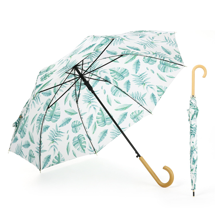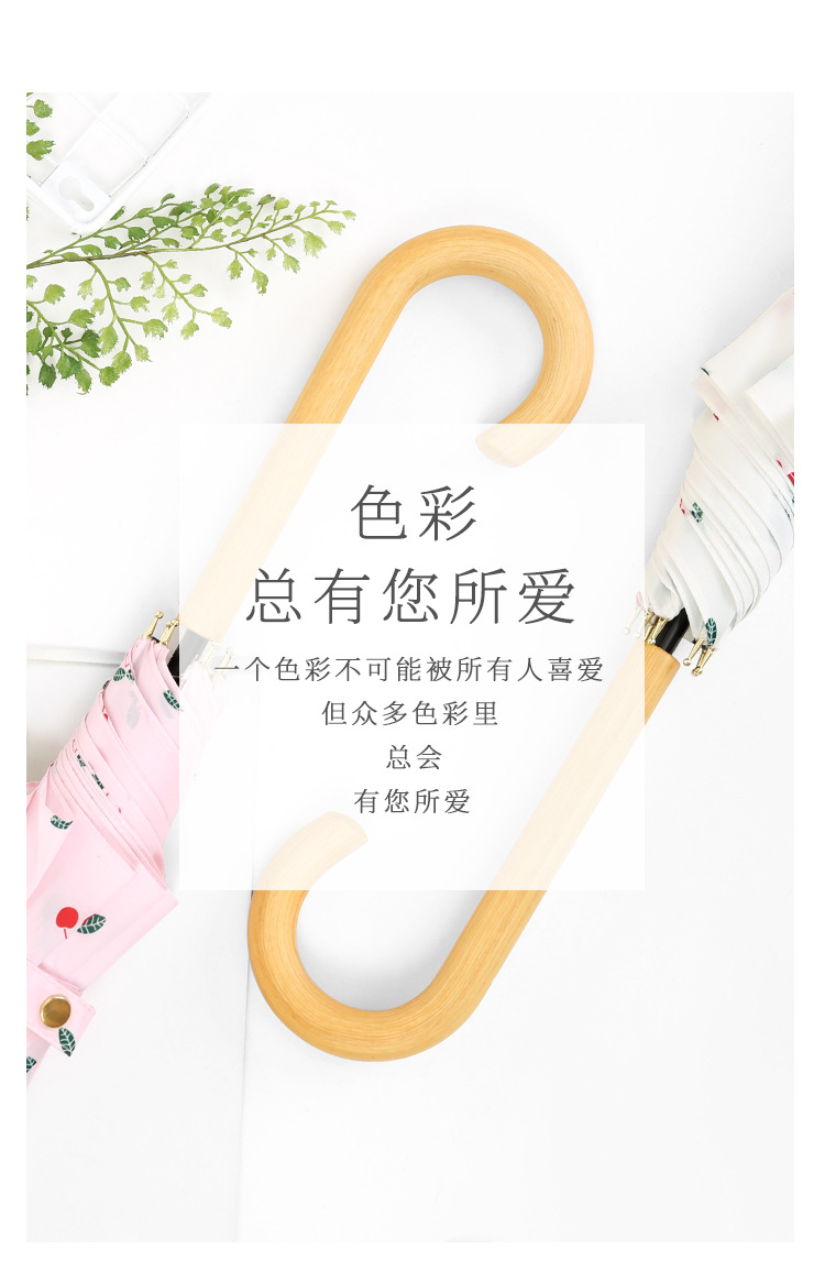商品名称:清新文艺木柄弯柄直杆伞雨晴两用伞户外遮阳 夏日礼品