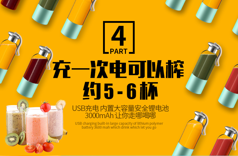 商品名称:幻响(i-mu)汁道电动榨汁机迷你便携榨汁杯充电式小型果汁机套装