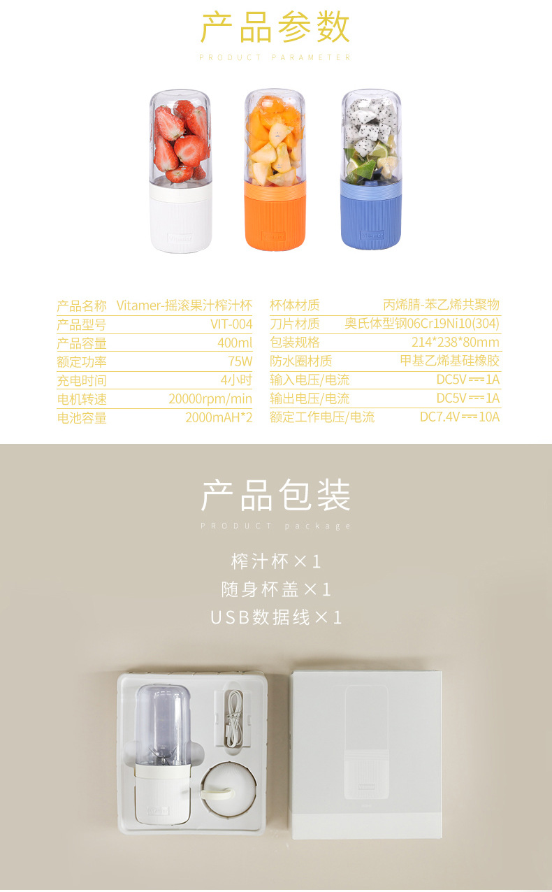 商品名称:【VITAMER】行走的榨汁杯 带随身杯盖摇滚果汁榨汁杯 员工生日礼品方案