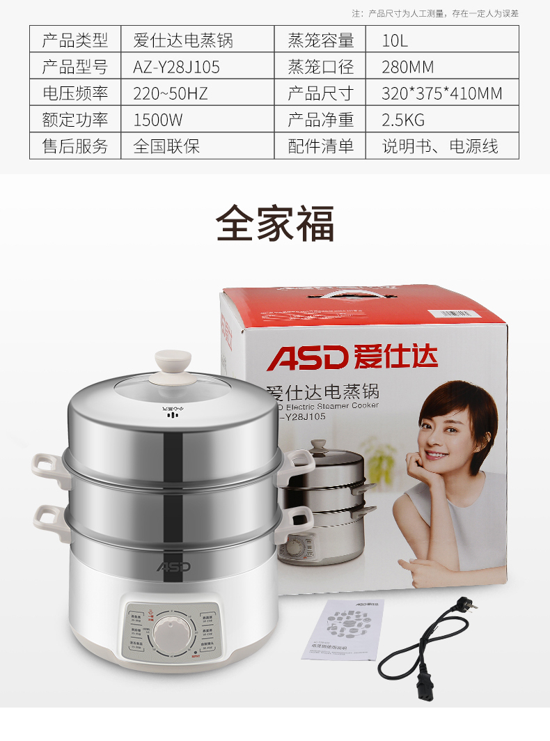 商品名称:爱仕达(ASD)不锈钢多功能大容量电蒸锅蒸蛋器 送员工礼品