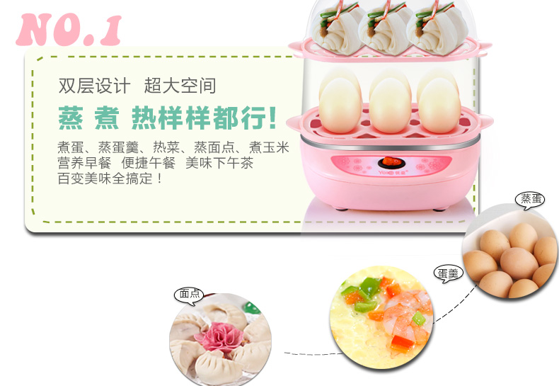 商品名称:优益(Yoice) 双层煮蛋器 蒸蛋蒸菜消毒器 自动断电防干烧 实用小家电礼品