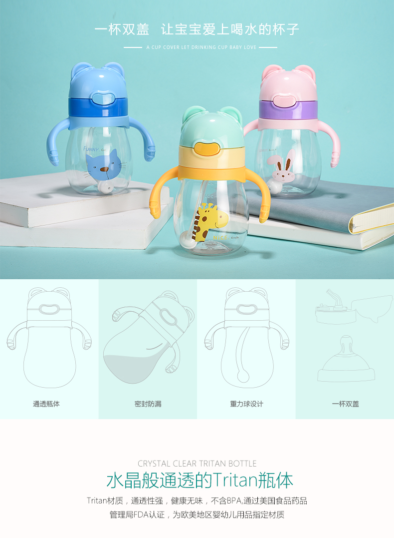 商品名称:可爱卡通两用婴儿水杯 带手柄重力球学饮杯 宝宝吸管杯 婴儿奶瓶320ML 母婴活动礼品