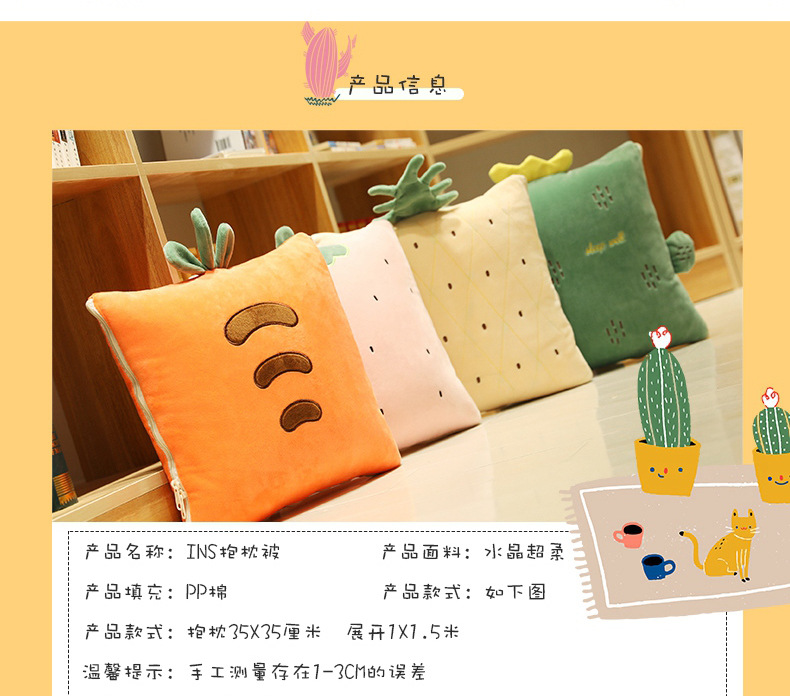 商品名称:卡通水果两用抱枕被 靠垫午睡空调被拉链设计一物多用 积分活动礼品