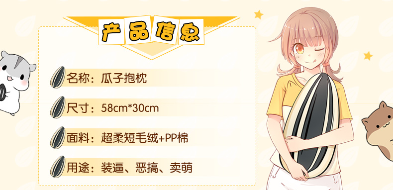 商品名称:【瓜子抱枕】仓鼠瓜子抱枕靠枕 大号超软毛绒公仔 动漫周边礼品 创意礼品