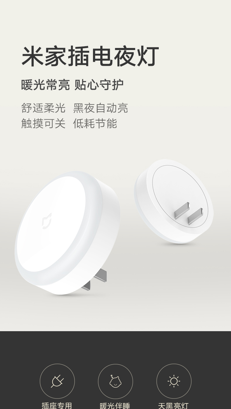 商品名称:小米 米家感应插电小夜灯 智能床头灯 低功率夜灯 日常小礼品