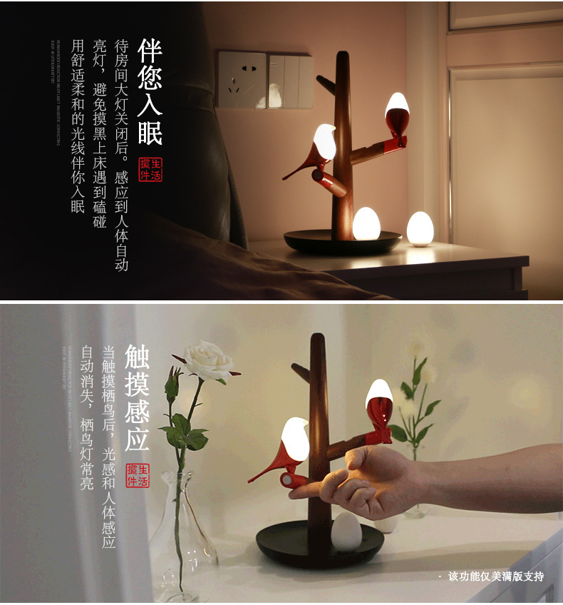 喜上梢智能感应灯置物收纳摆件架光控小鸟树枝磁吸小夜灯 高级礼品