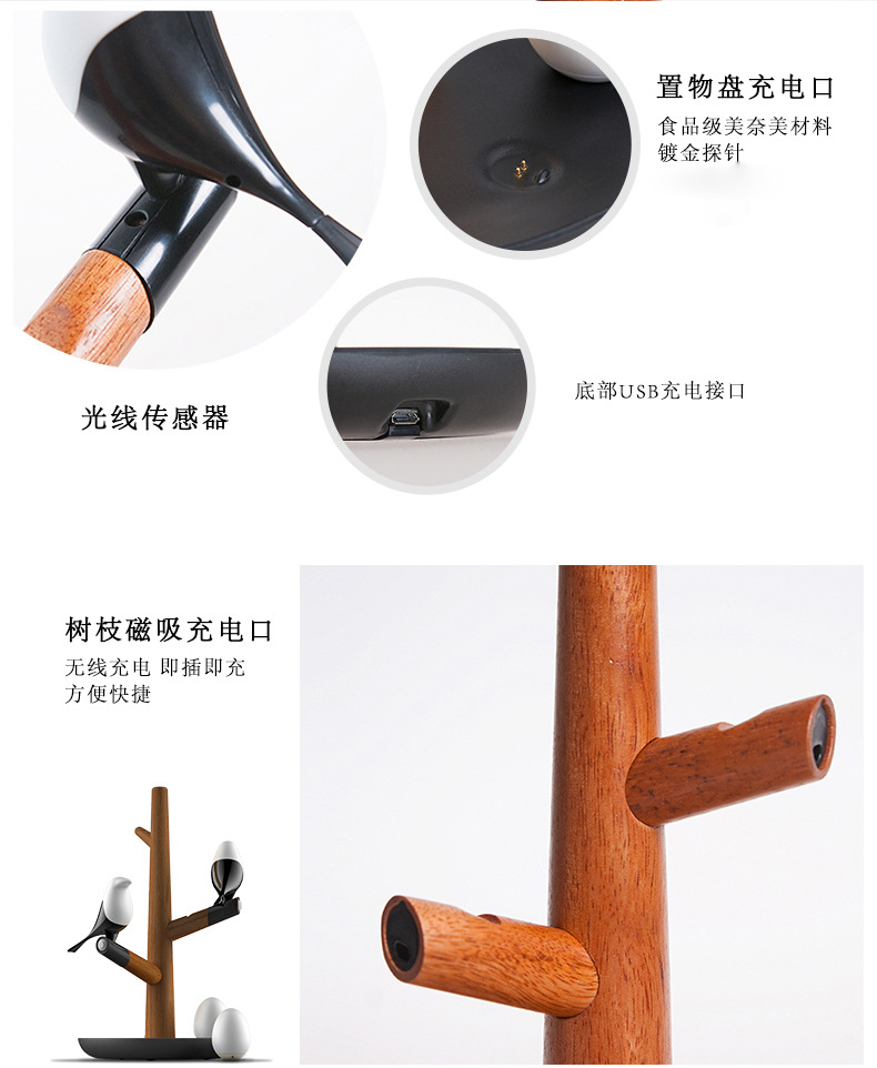 商品名称:喜上梢智能感应灯置物收纳摆件架光控小鸟树枝磁吸小夜灯 高级礼品