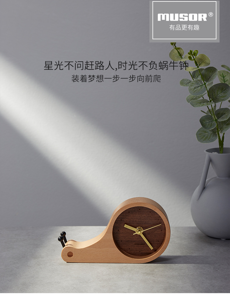 商品名称:MUSOR 蜗牛时钟实木桌面时钟卡通蜗牛家居摆件 创意私人定制奖品