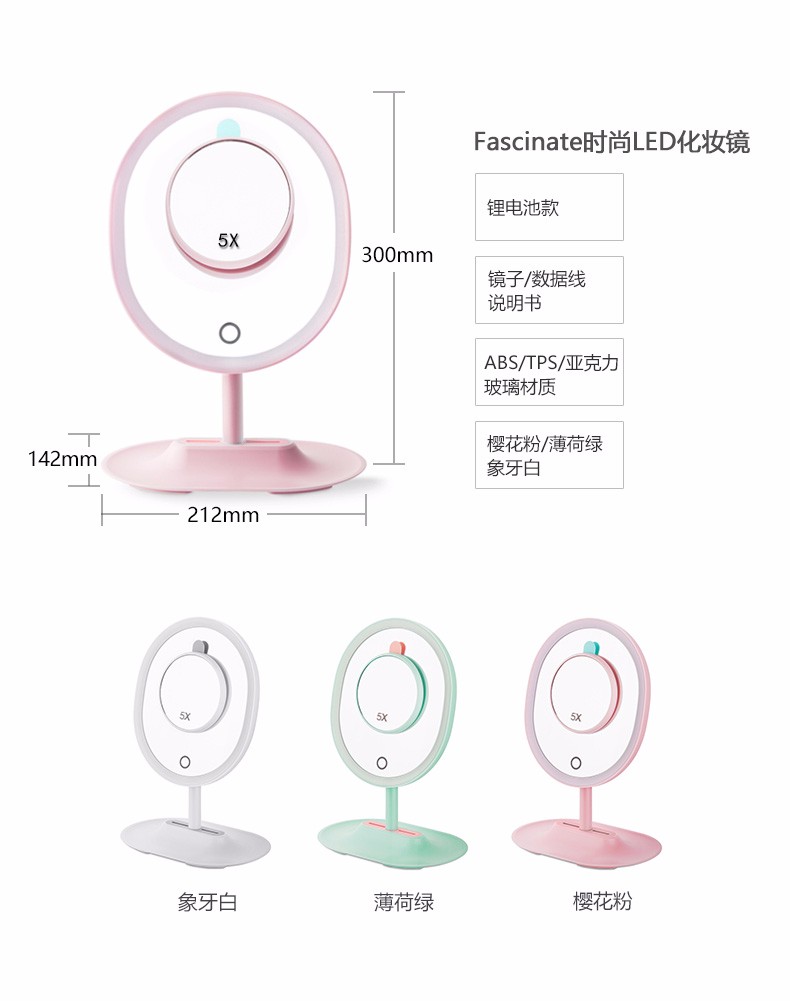 FASCIANTE(斐色耐)带灯LED镜子智能美妆镜梳妆镜台式镜子 企业宣传礼品
