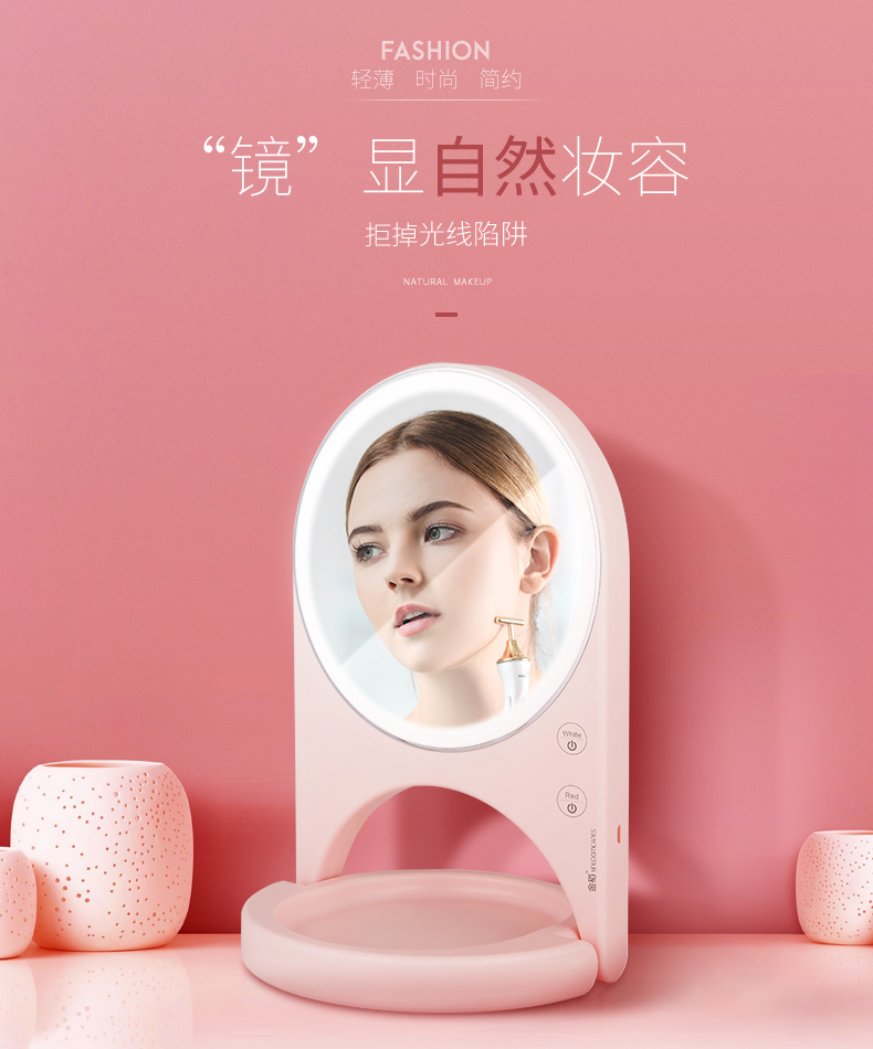 金稻 LED美妆镜带灯补光化妆镜床头台灯 收纳置物无线便携 三八节温馨礼品