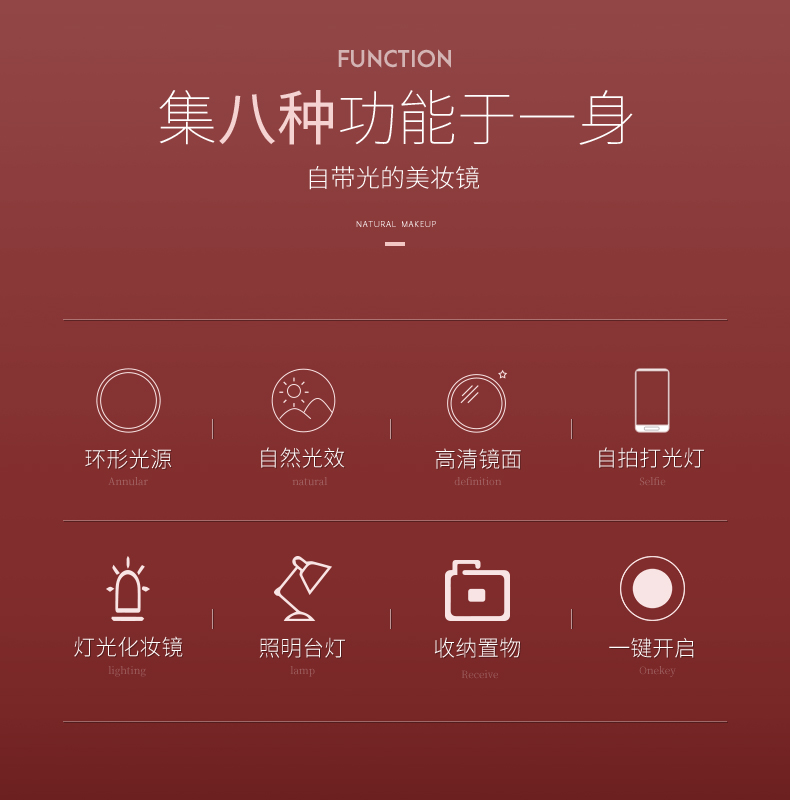 商品名称:金稻 LED美妆镜带灯补光化妆镜床头台灯 收纳置物无线便携 三八节温馨礼品