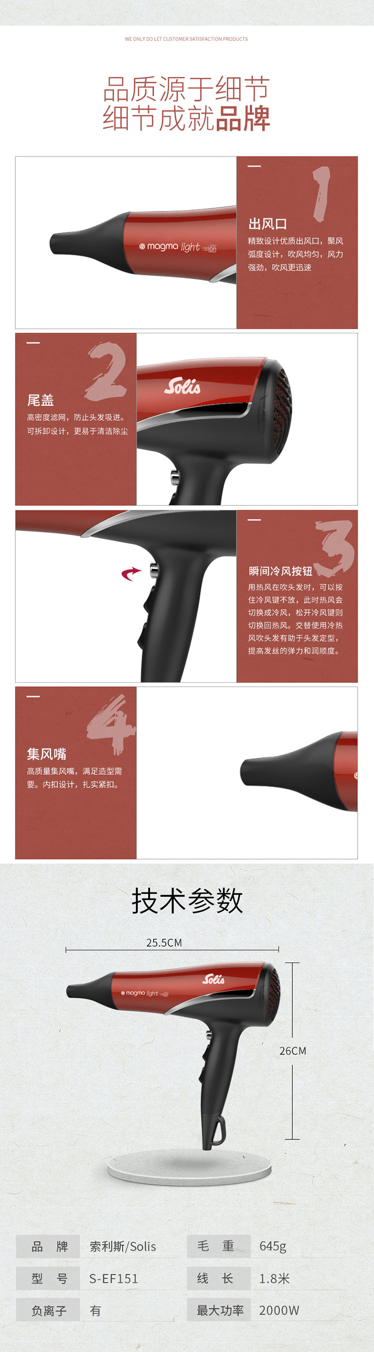 商品名称:Solis 负离子护发吹风机快速造型吹风筒 超大风量轻松干发 送客户什么礼品实用