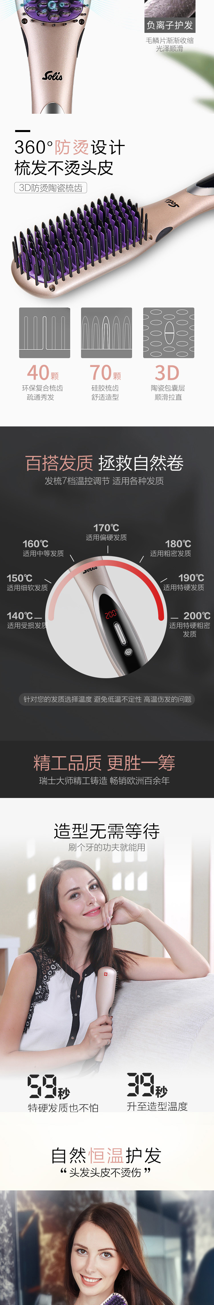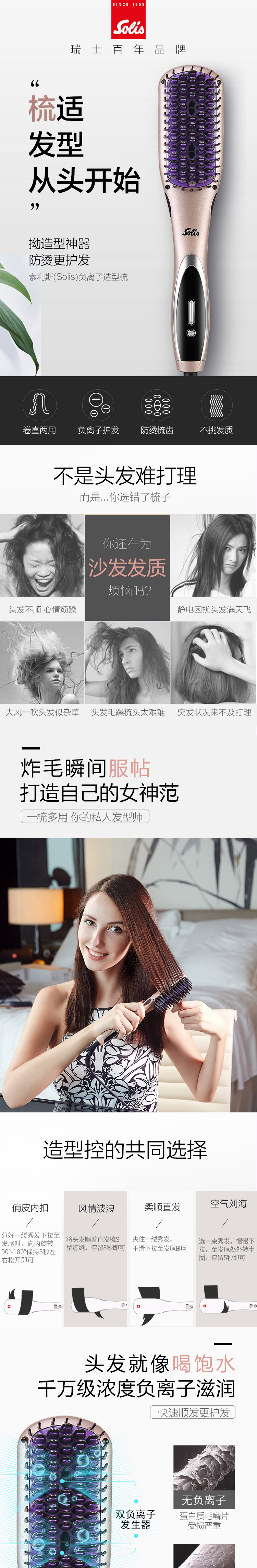 商品名称:Solis 卷直两用美发神器 负离子造型梳卷发棒按摩梳 送女士什么礼品好