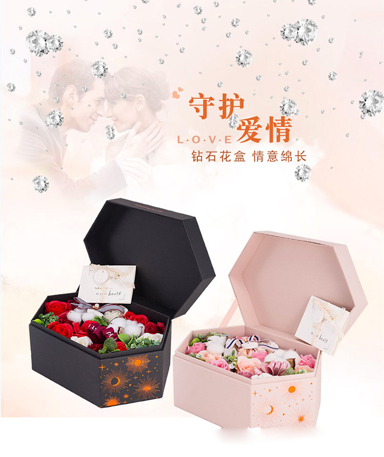 商品名称:【情意绵长】香皂花钻石礼盒 大红粉红玫瑰香皂花束 情人节伴手礼
