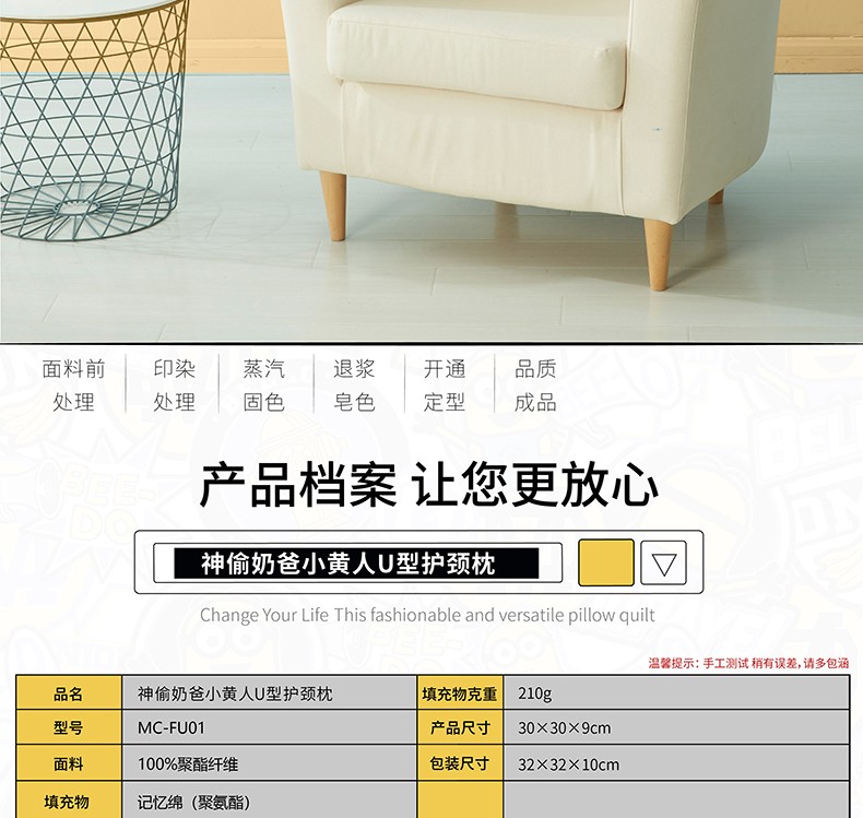 商品名称:小黄人U型护颈枕午休趴睡枕 公司活动纪念品
