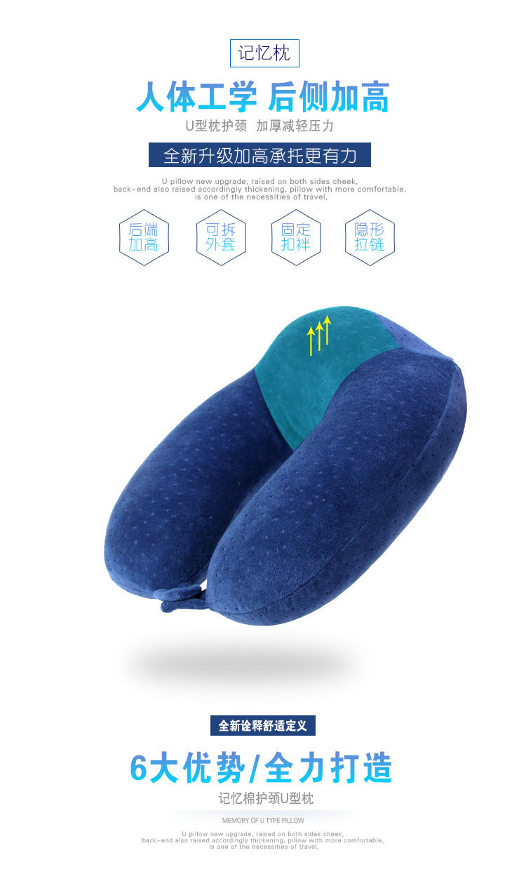商品名称:高性价比慢回弹天鹅绒记忆棉U型枕 办公午睡枕定制 护颈枕旅游礼品