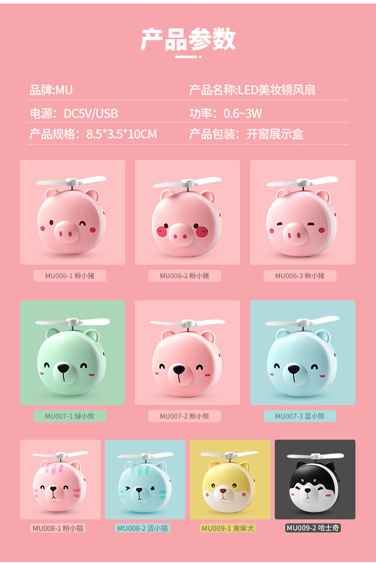 商品名称:携带化妆镜女生随时小风扇 迷你可爱风扇定制 女生夏季礼品定制