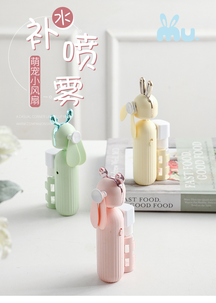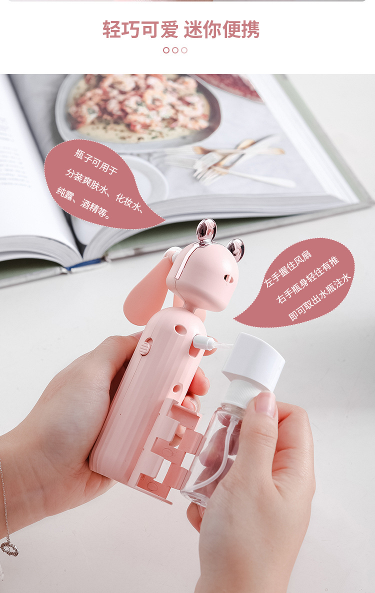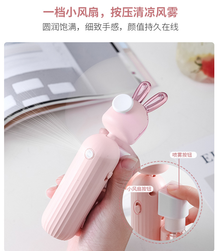 商品名称:便携手持卡通USB充电加湿喷雾小风扇 送定制logo学生礼品风扇