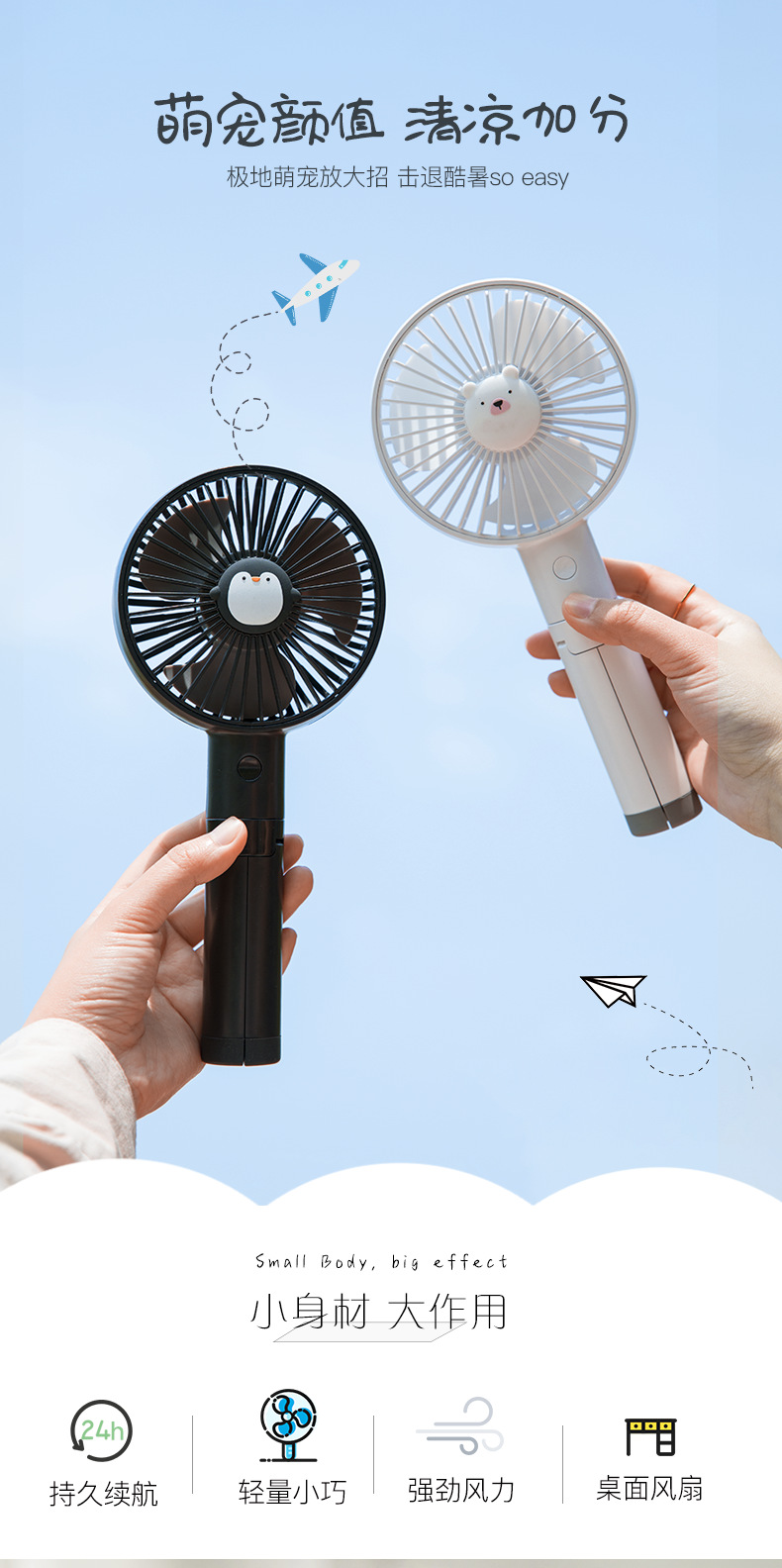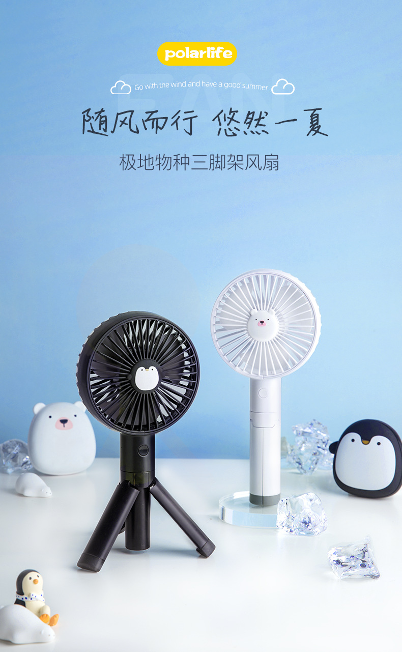 商品名称:极地物种手持风扇 便携支架风扇 可收纳USB小风扇 桌面三脚架风扇 活动奖品