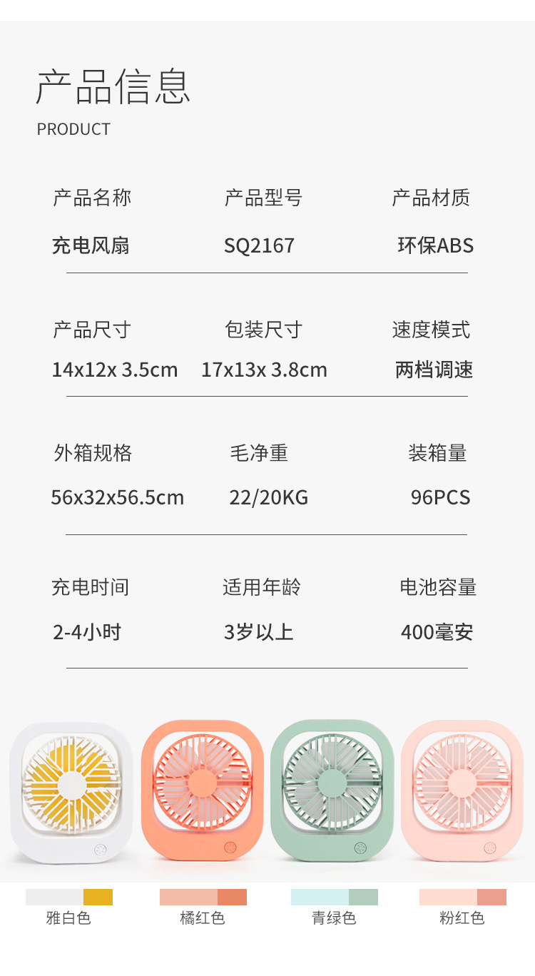 商品名称:商务简约迷你充电风扇 清凉桌面风扇公司活动促销定制礼品 夏季礼品