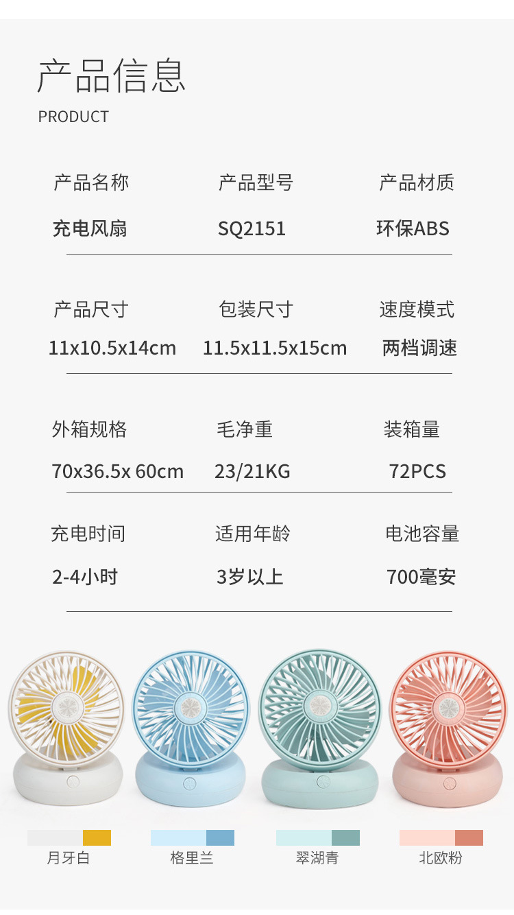 商品名称:简约创意马卡龙圆形桌面风扇 迷你USB充电风扇 促销礼品赠品 开会伴手礼
