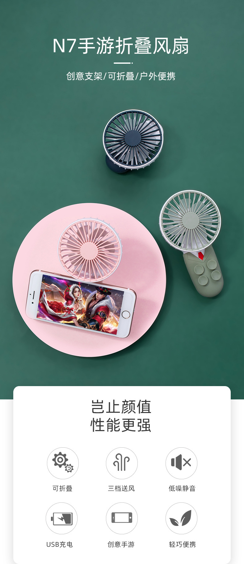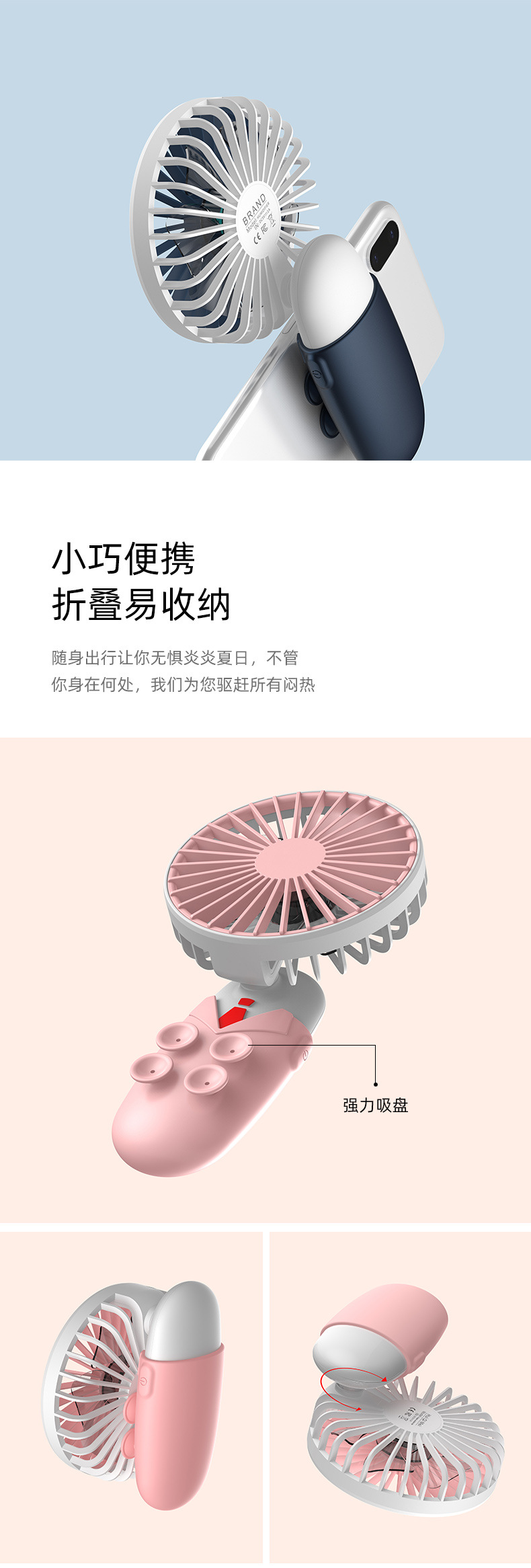 商品名称:手机专用手游折叠风扇 创意可充电手机游戏吸盘小风扇 游戏参与奖品
