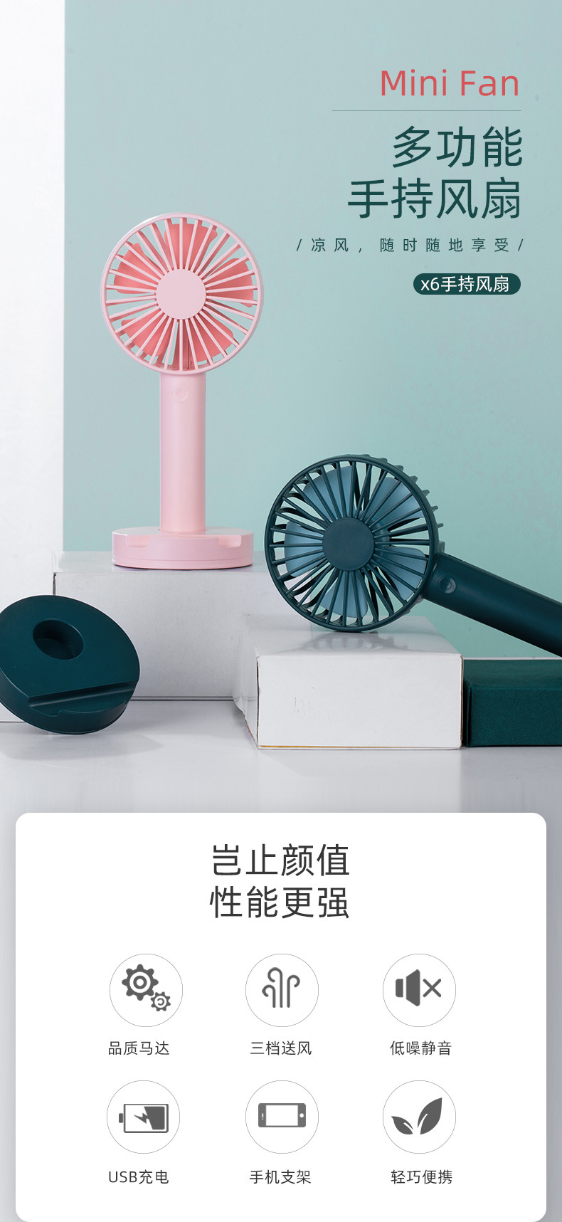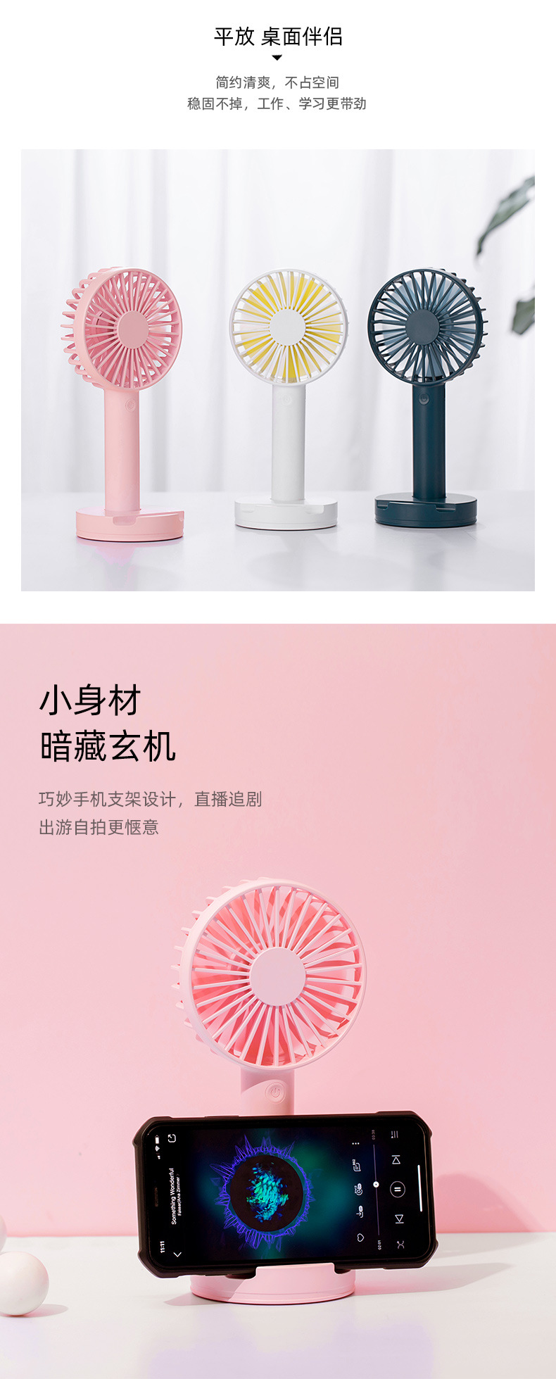 商品名称:便携手持风扇 手机支架台式小风扇 活动奖品定制