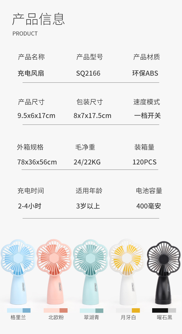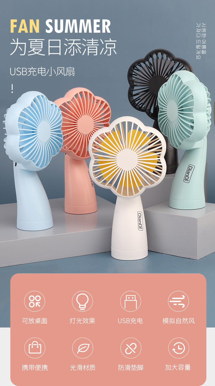 商品名称:梅花造型便携手持小风扇 USB充电发光风扇 活动奖品派发