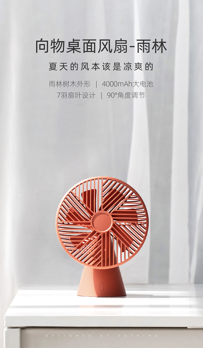 商品名称:sothing 雨林桌面风扇 7羽扇叶 可充电式办公家用小风扇 有设计感的礼品
