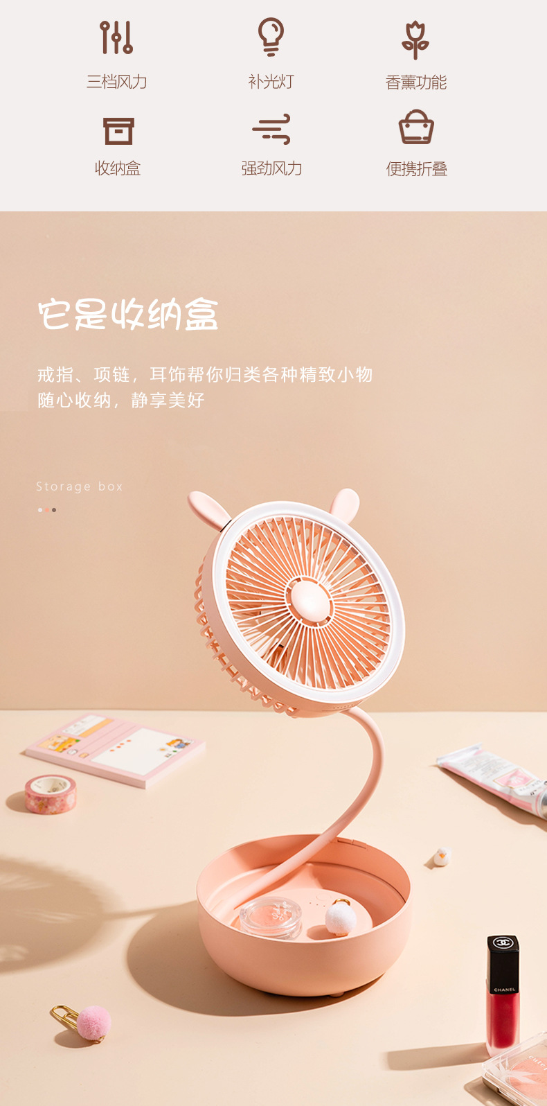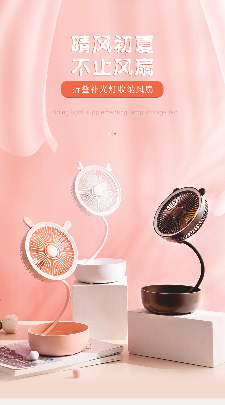 商品名称:森林系多功能桌面收纳风扇 折叠补光灯香薰小风扇 员工福利小礼品