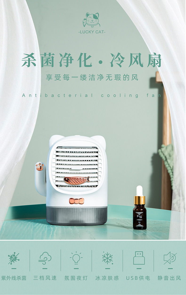 商品名称:招财猫水冷风扇 USB桌面紫外线消毒灯 香薰多功能小空调 礼品定制创意 奖励员工的奖品