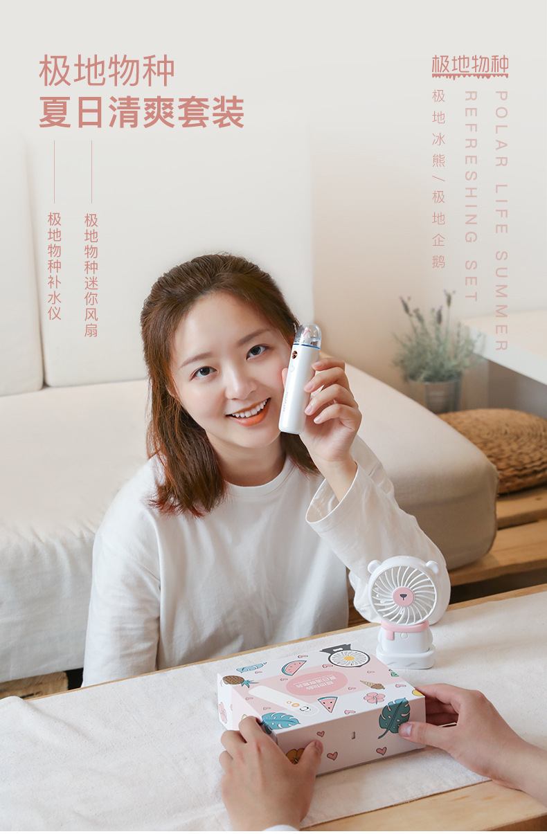 极地物种夏日清爽套装 风扇补水仪两件套 纳米补水喷雾 随身便携卡通风扇 大学生礼品 办公室必备礼品