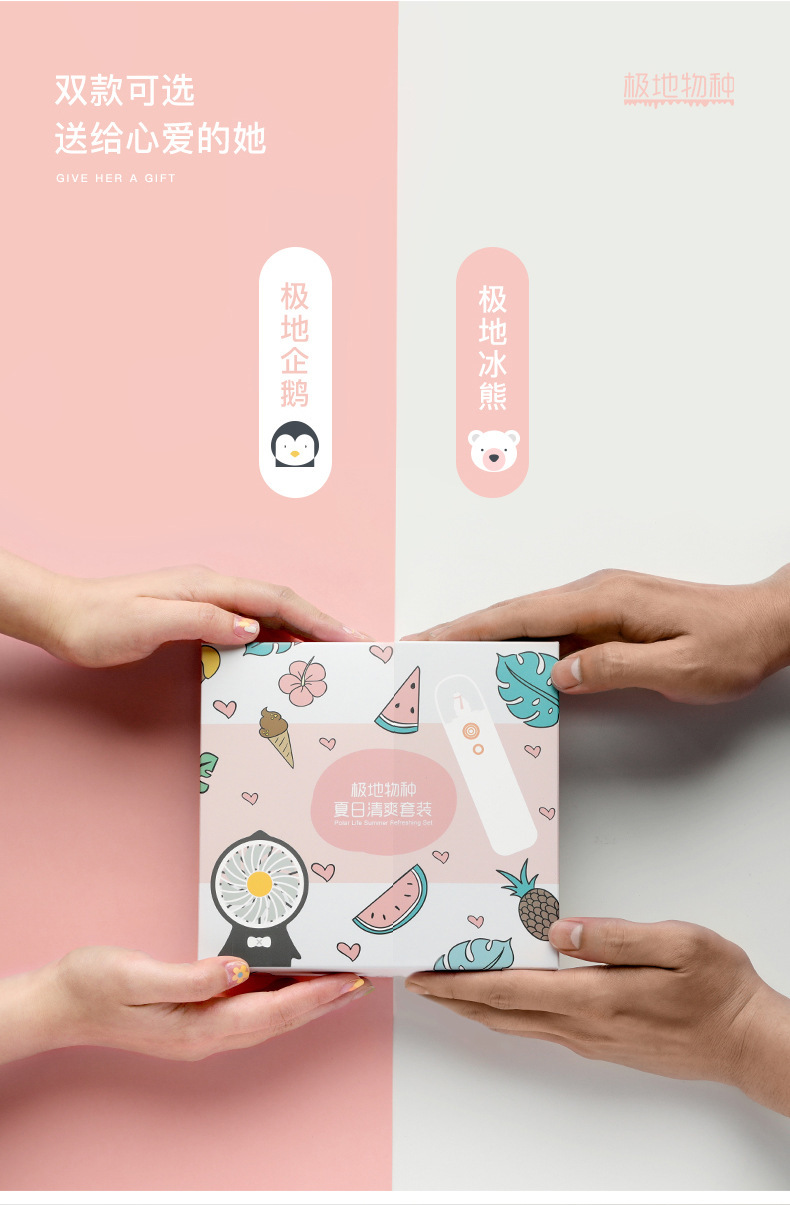 商品名称:极地物种夏日清爽套装 风扇补水仪两件套 纳米补水喷雾 随身便携卡通风扇 大学生礼品 办公室必备礼品