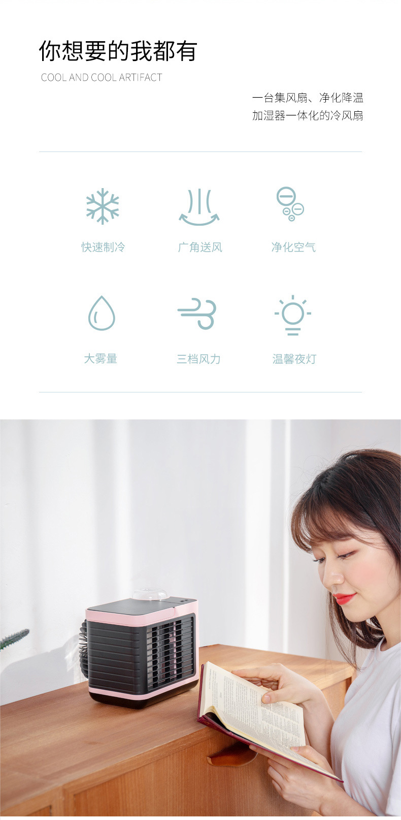 商品名称:夏季清凉负离子冷风机 usb充电款迷你小型家用桌面空调制冷风扇 活动游戏奖品