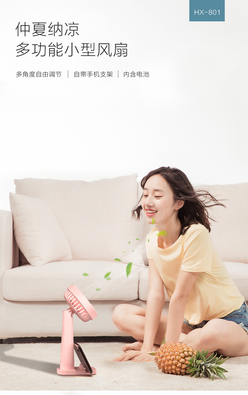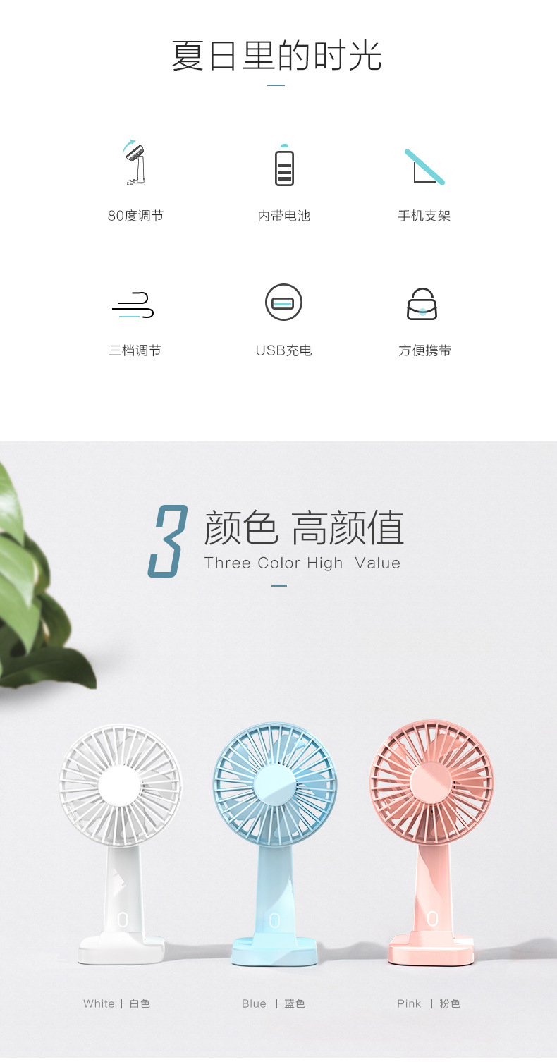 商品名称:2020新款手持风扇 手机支架可手动摇头桌面风扇 小学生喜欢的小礼品