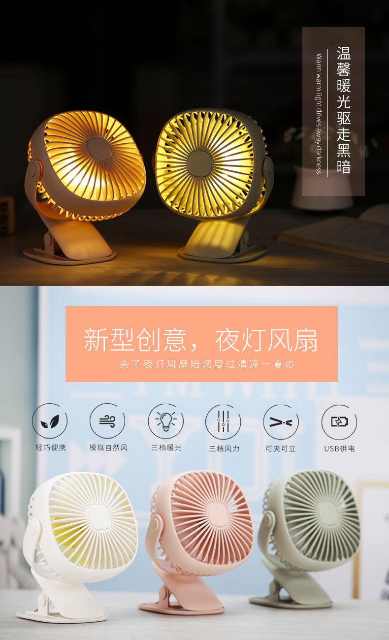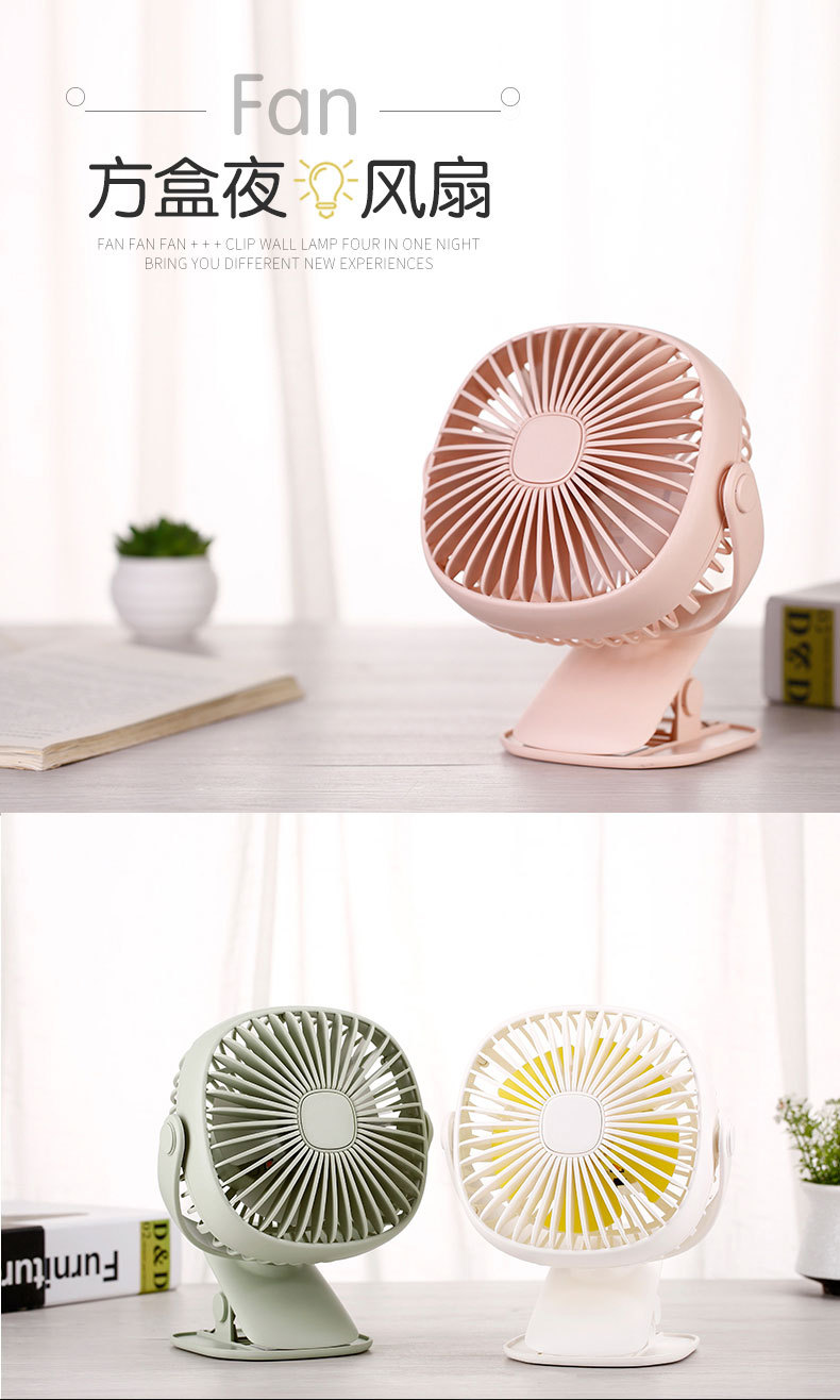 商品名称:多功能夜灯充电风扇 方盒小巧桌面风扇 360度旋转小夹子风扇 公司员工礼品 走访礼品