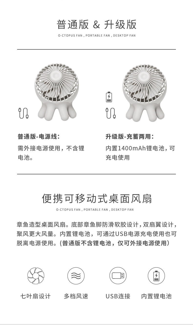 商品名称:创意章鱼迷你USB风扇 静音桌面小风扇定制 个性创意礼品