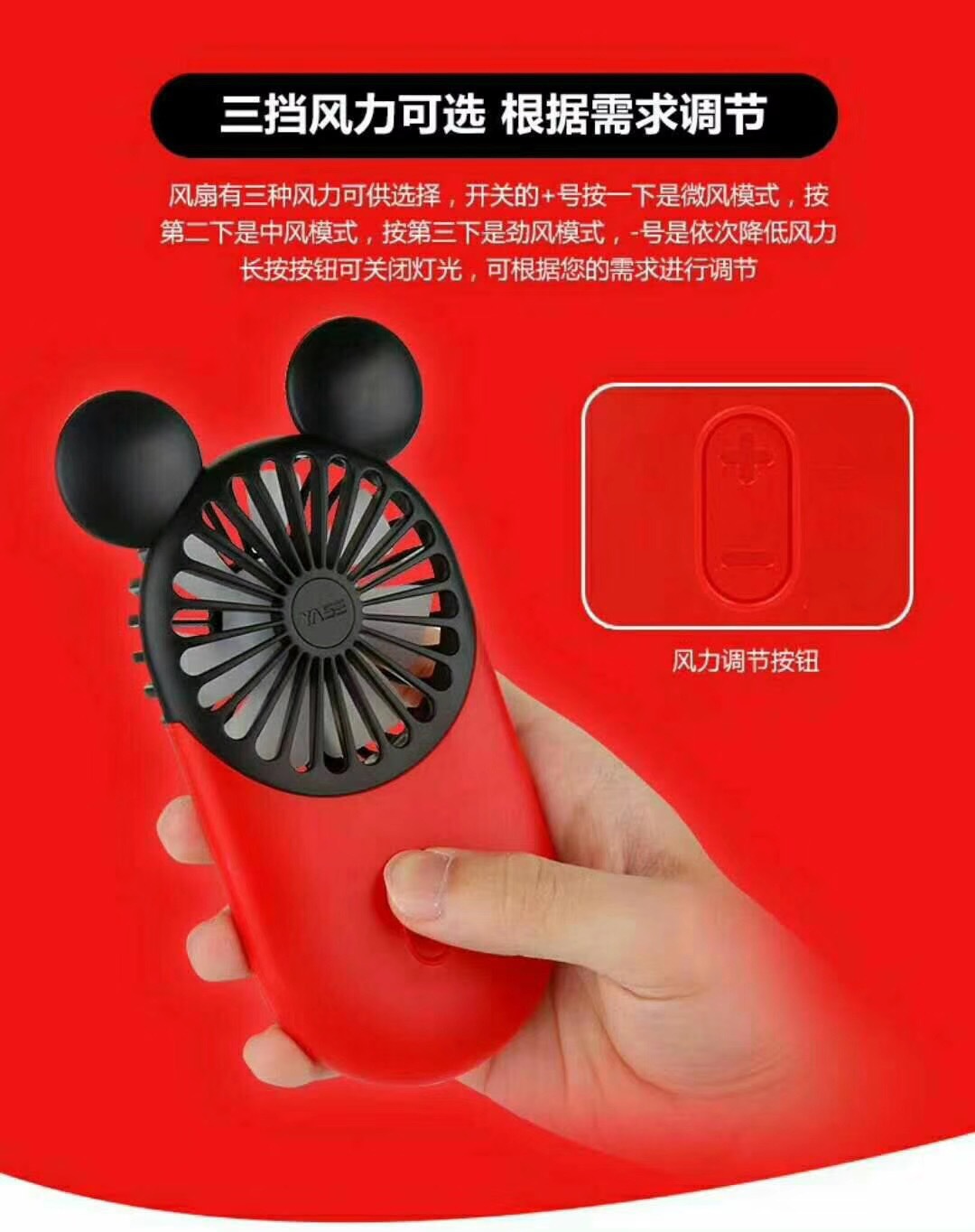 商品名称:卡通米奇指环扣迷你掌上风扇 三档风力炫酷灯光 礼品创意网