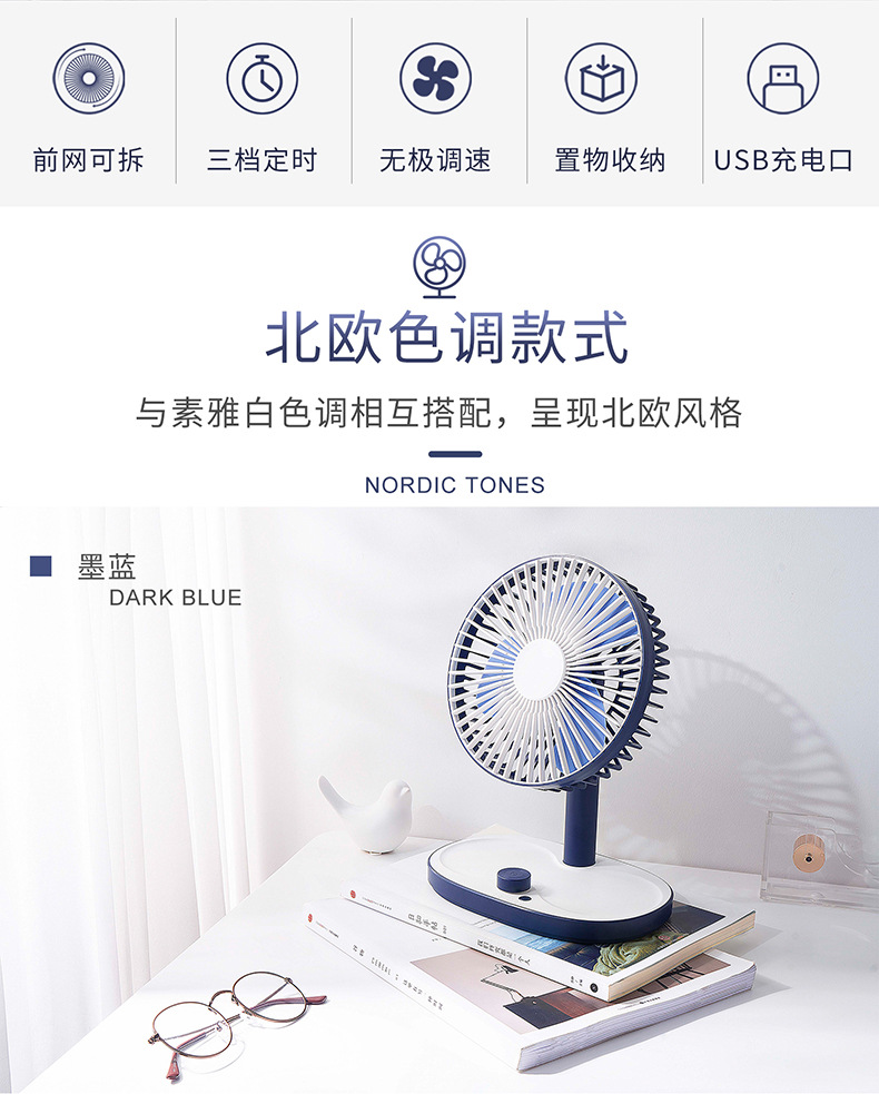 北欧色调桌面素雅风扇 智能定时置物收纳风扇 送客户什么礼品最实用