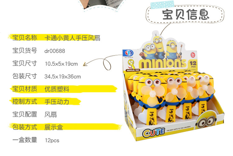 商品名称:卡通小黄人可爱手压风扇 小巧便携迷你风扇 拓客小礼品