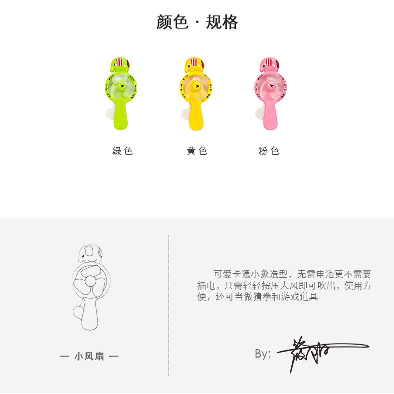 商品名称:快乐小象手压风扇 转盘游戏风扇玩具风扇 扫码赠送小礼品