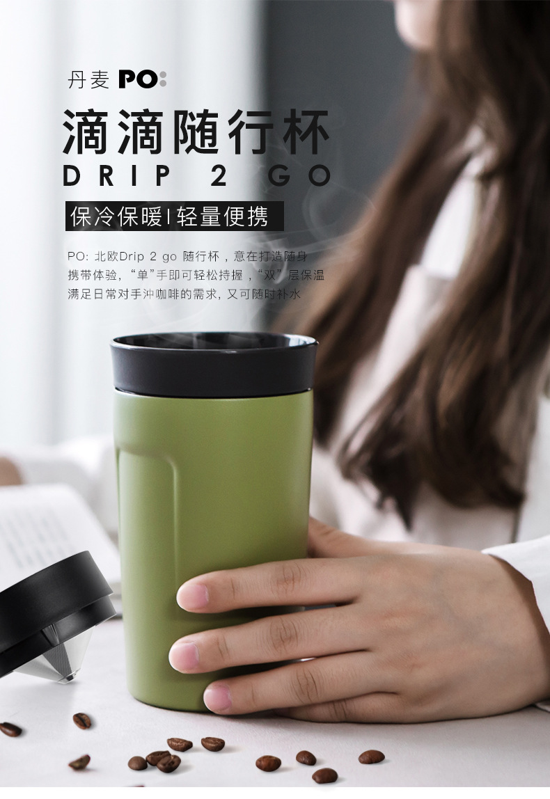 丹麦PO 北欧滴滴随行咖啡杯 便携车载水杯双层保冷保温时尚大容量杯350ML 年度抽奖奖品