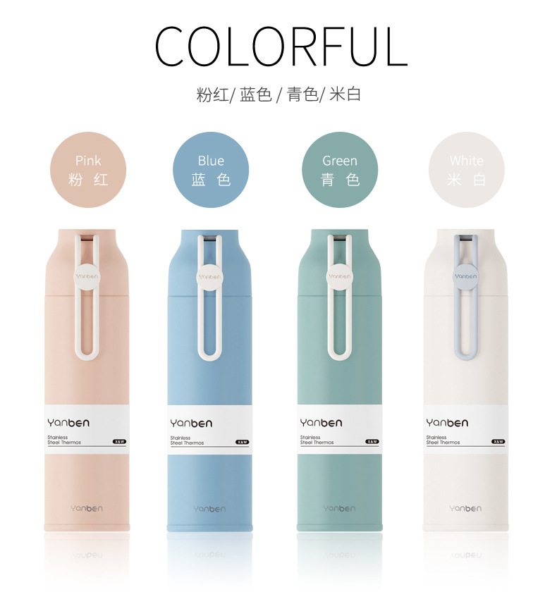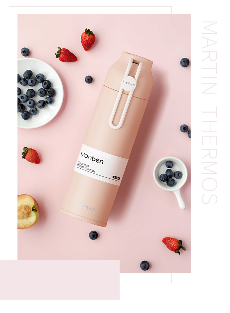 商品名称:创意硅胶提绳大口径不锈钢保温杯简约便携运动水杯350ML 员工活动小礼品