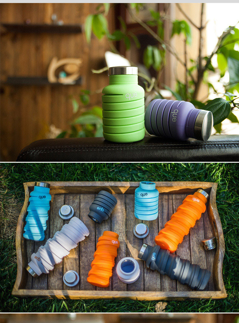 美国Que Bottle摔不碎时尚环保水杯 可折叠伸缩硅胶运动旅行便携 户外实用精美礼品