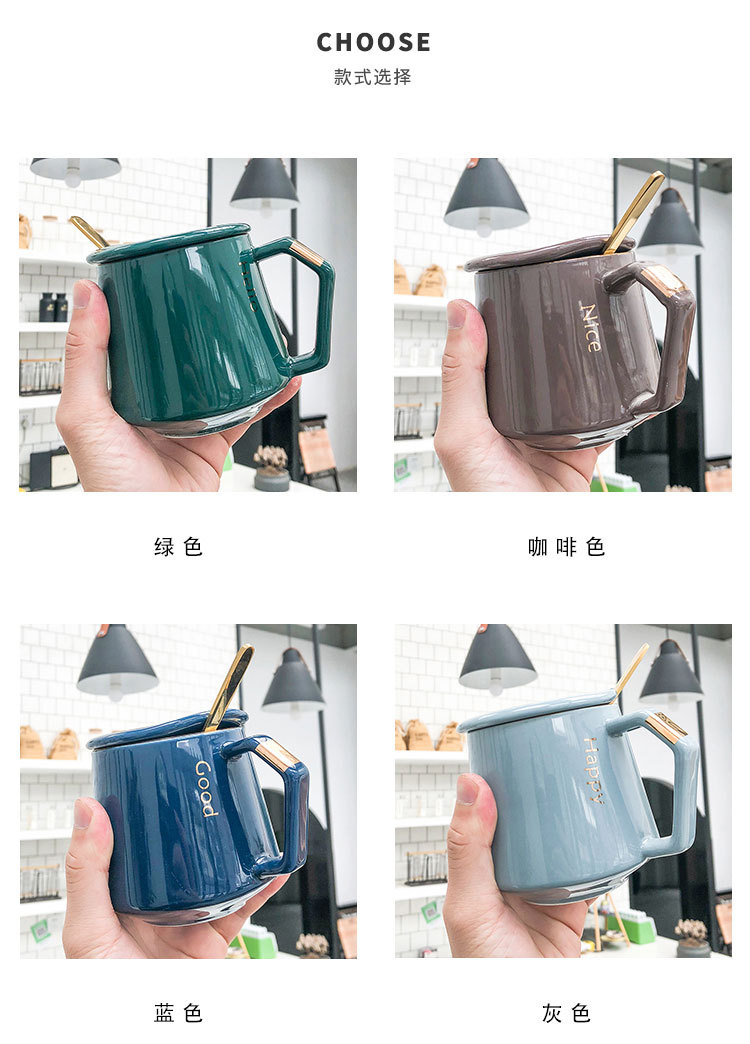 商品名称:商务描金陶瓷咖啡杯 带盖带勺陶瓷杯 办公室马克杯定制